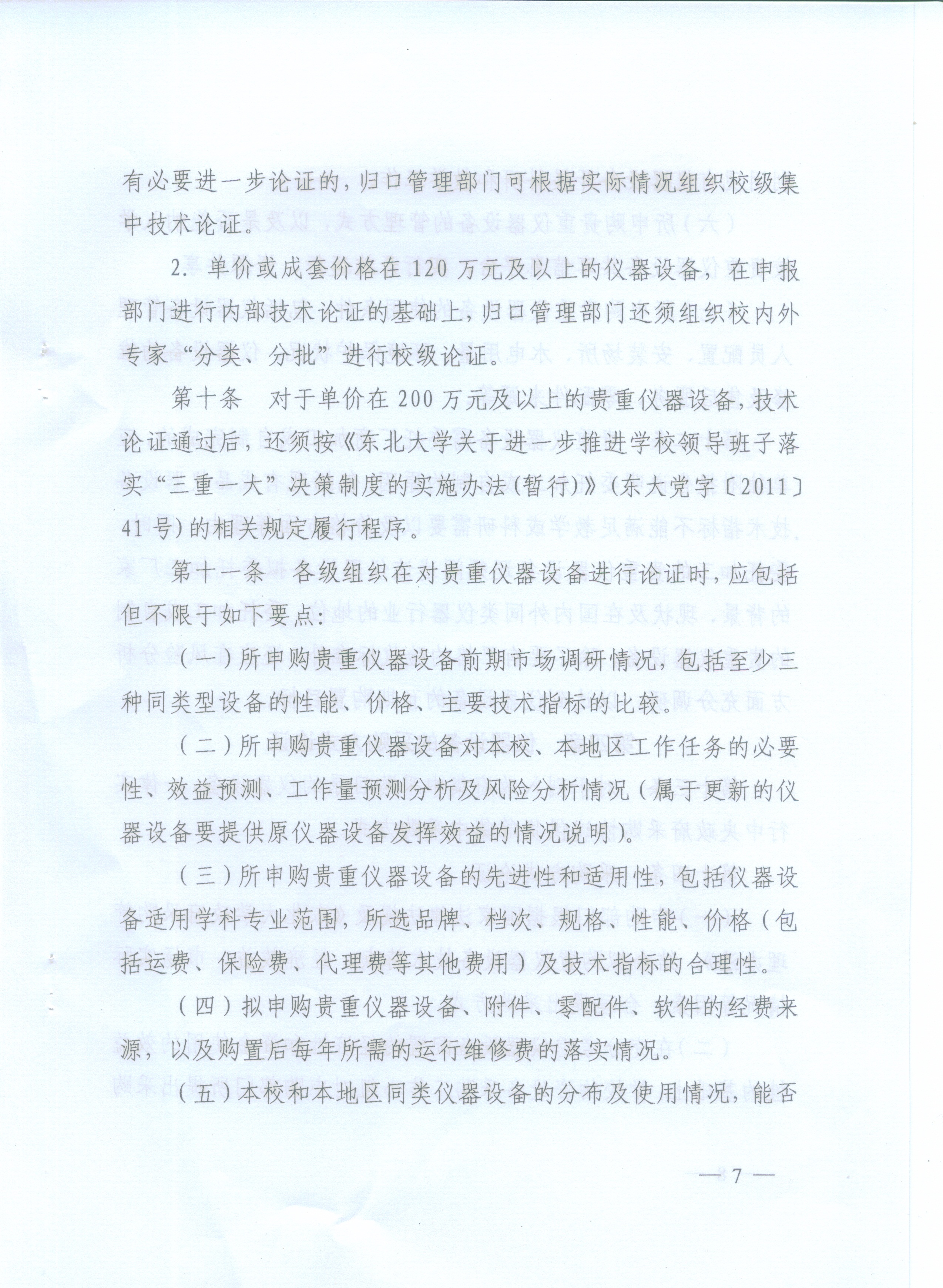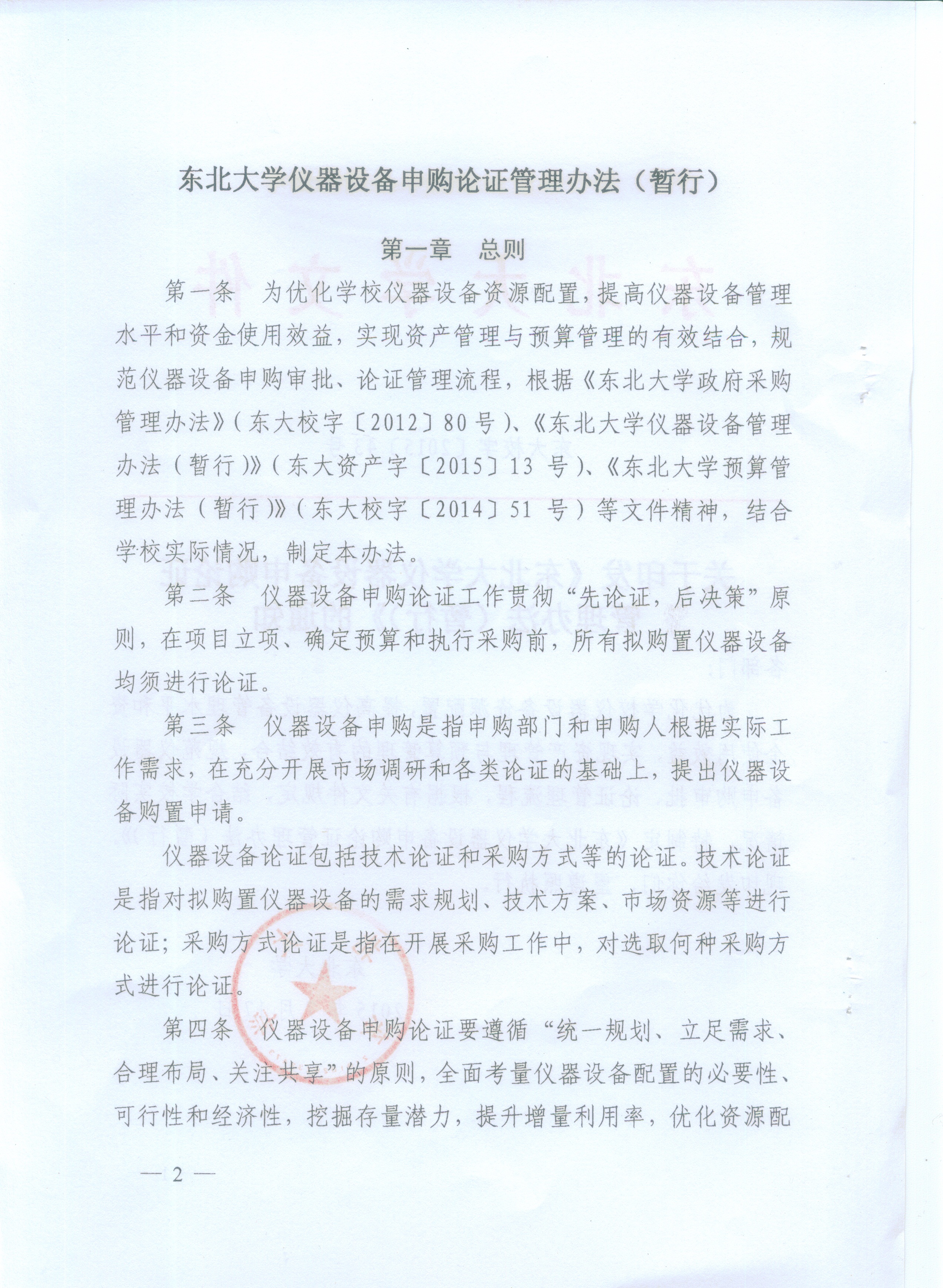 关于印发《东北大学仪器设备申购论证管理办法(暂行)》的通知